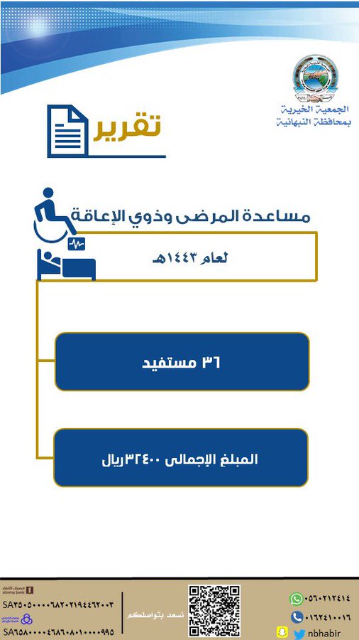 ضمن مشاريع الجمعية الخيرية بمحافظة النبهانية (مساعدة المرضى وذوي الإعاقة)