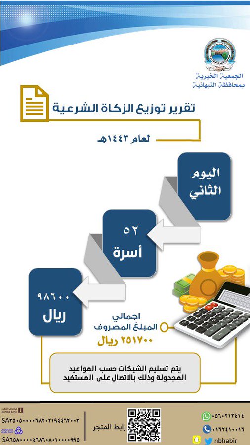 تقرير توزيع الزكاة الشرعية بجمعية النبهانية اليوم الثاني