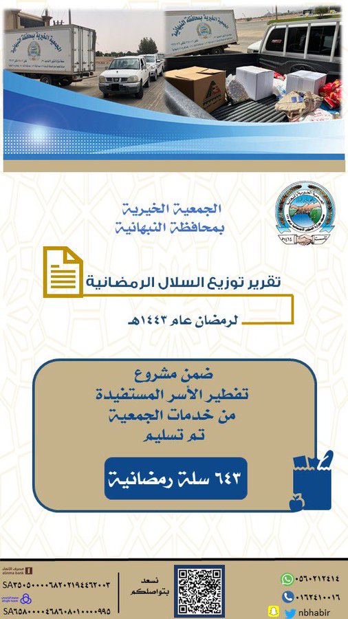 بدعم من منصة إحسان سلمت جمعية النبهانية السلال الرمضانية للمستفيدين