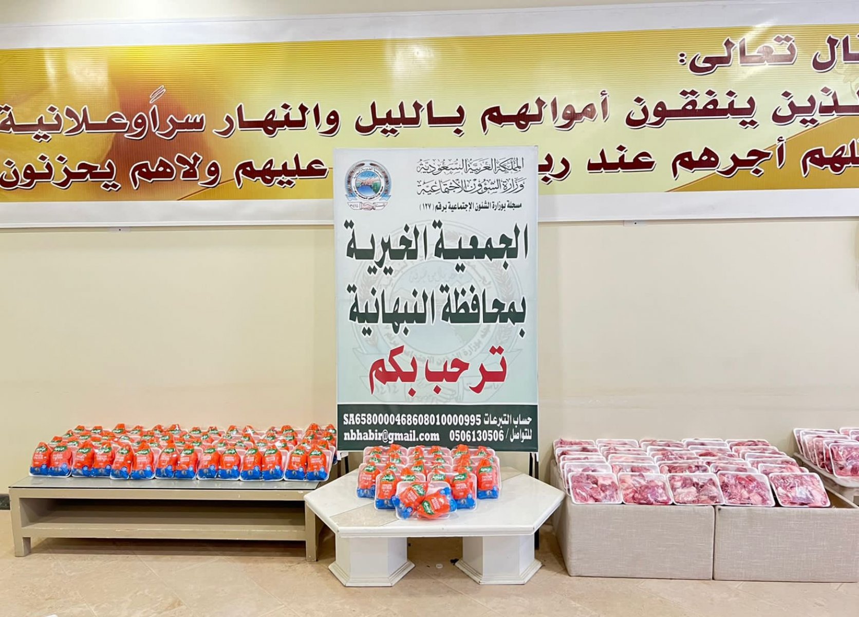 بدعم من وقف الشيخ ابراهيم الدغيثر رحمه الله سلال لحوم وخضار طازجة للمستفيدين بجمعية النبهانية
