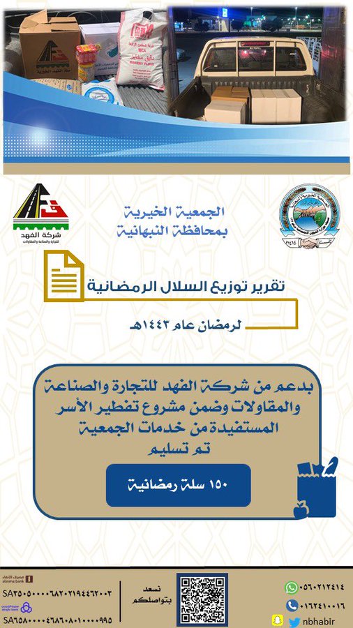 دعم شركة الفهد للمسفيدين بجمعية النبهانية الخيرية