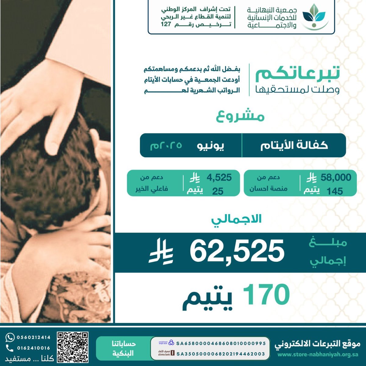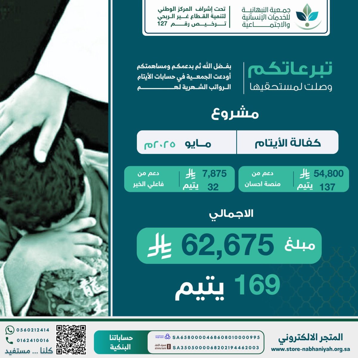 توديع كفالة الايتام لشهر مايو 2025 بحساباتهم