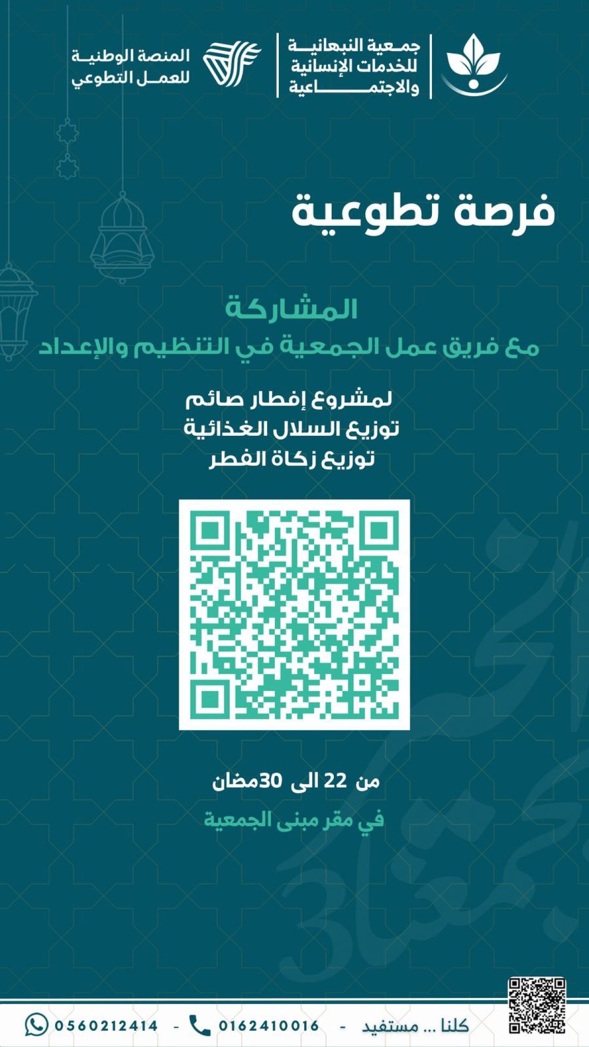 جمعية النبهانية للخدمات الإنسانية والإجتماعية تتيح فرص التطوع في رمضان