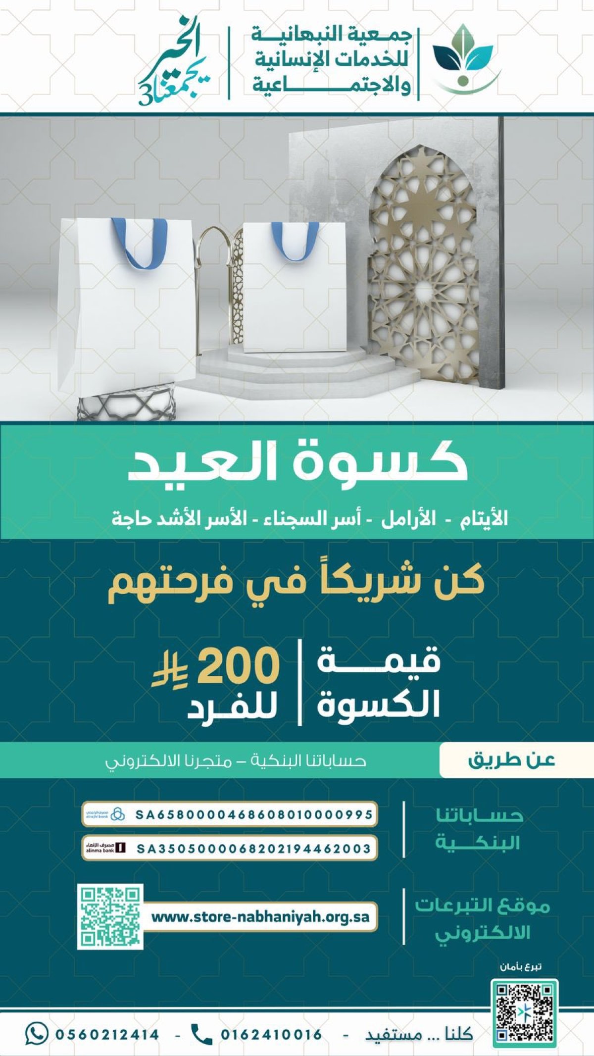 كن شريكاً في فرحتهم في العيد -مشروع كسوة العيد للأيتام والأرامل وأسر السجناء والأسر الأشد حاجة.